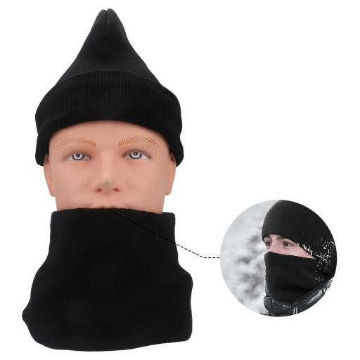 Możesz używać tego wielofunkcyjnego zestawu czapki termicznej i szalika razem lub osobno. Rozciągliwa czapka i szalik utrzymają ciepło głowy, uszu, twarzy i szyi.