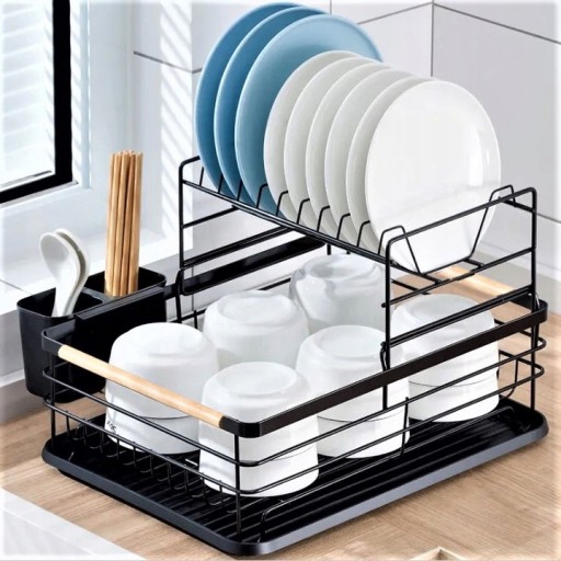 Двухуровневая сушилка для посуды в черном стиле.