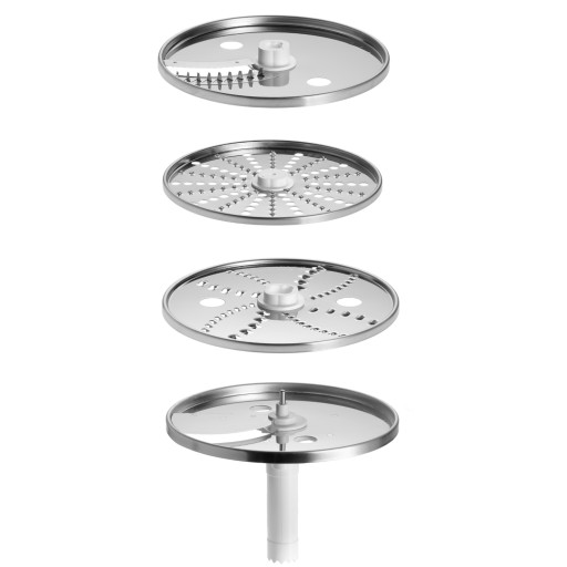 - Dwustronna tarcza trąca - Do tarcia warzyw korzeniowych i innych twardych produktów na małe i średnie wiórki.