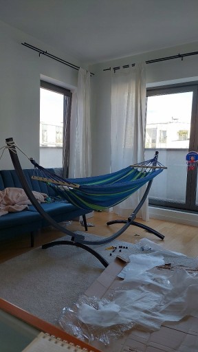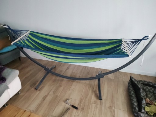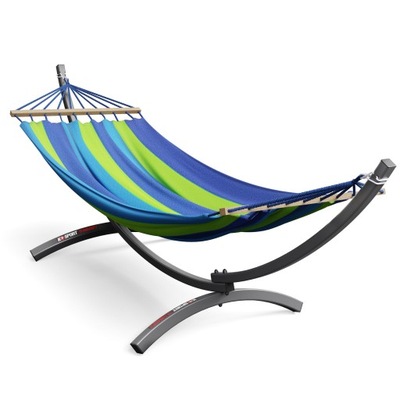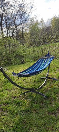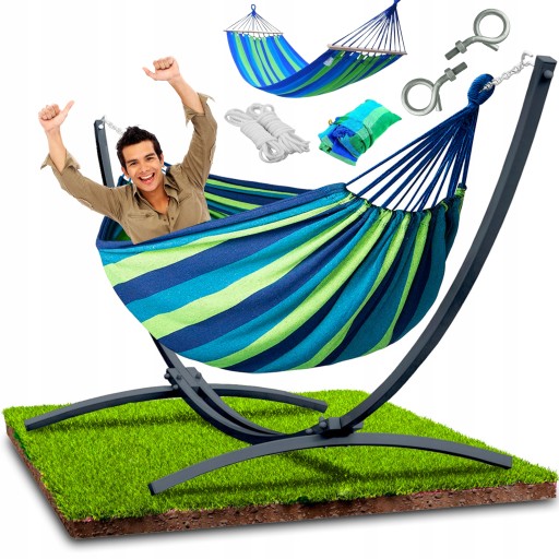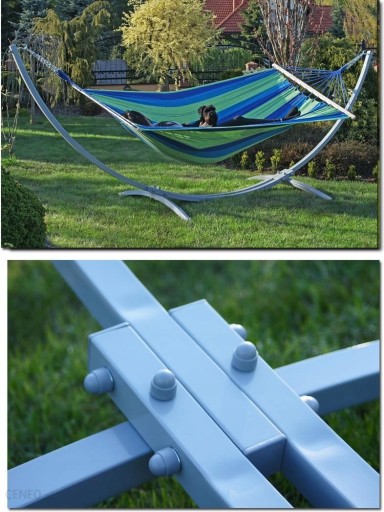 - Hamak w zestawie: W pakiecie otrzymujesz wygodny. dwuosobowy hamak - idealnie dopasowany do stelaża.