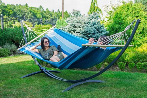 Nasz stelaż z hamakiem to idealne rozwiązanie dla par. Dzięki dużemu maksymalnemu obciążeniu do 250 kg. dwie osoby mogą wygodnie korzystać z hamaka jednocześnie. To oznacza podwójny relaks. podwójne korzyści. a wszystko to w cenie jednego! Z naszym produktem. możesz dzielić momenty relaksu ze swoją drugą połówką bez dodatkowych kosztów."