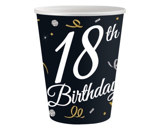 Szykuje się osiemnastka? Zwykłe, białe kubeczki jednorazowe na pewno nie nadają się na taką imprezę. Zasługujesz na coś naprawdę wyjątkowego. Wybierz urodzinowe kubeczki papierowe na 18 urodziny z nadrukiem „18th Birthday” i pokaż swój styl!