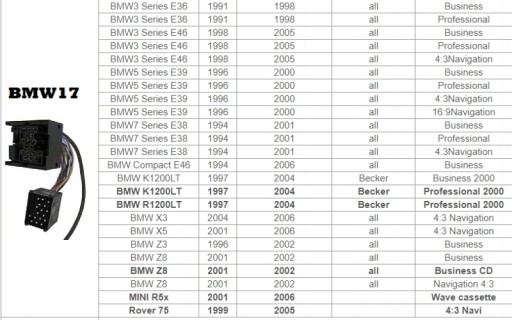 BE6507(E39 BMW Business), PH7030(BMWBusiness), PH8030(BMW Business CD), CD53 E39/53(BMW Business CD,Alpine),itd.