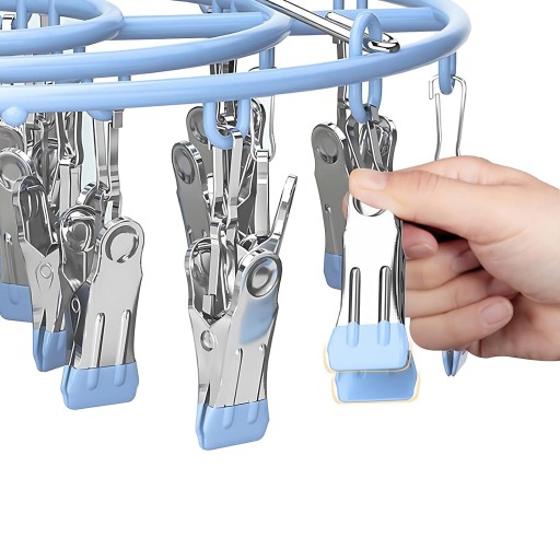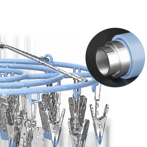 【Rama ze stali nierdzewnej】👖 Solidny wieszak na ubrania ze stali nierdzewnej wyposażony w 24 antypoślizgowe klipsy. Jednoczęściowy zintegrowany mechanizm sprężynowy ma znacznie większą siłę ciągnącą niż słabe drewniane spinacze do bielizny, dzięki czemu nie pęka ani nie rozpada się. Stal nierdzewna nie pozostawia śladów rdzy na mokrych ubraniach i nie pozostawia na nich „śladów zaszczypnięć”. Łatwo otwierające się klipsy do zawieszania są idealnie rozmieszczone, aby skutecznie maksymalizować przepływ powietrza.