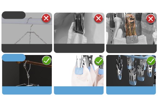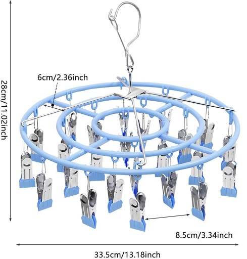 【Oszczędność miejsca】🧦 Można powiesić do 24 małych przedmiotów na 1 kompaktowej przestrzeni, co umożliwia wielofunkcyjne suszenie lub przechowywanie. Wisząca konstrukcja oszczędza cenną przestrzeń i można ją złożyć na płasko, gdy nie jest używana, co zapewnia wygodne przechowywanie, oszczędzając 50% miejsca. Wieszaki na klipsy i kroplówki pasują do wszystkich szaf i doskonale nadają się do mieszkań.
