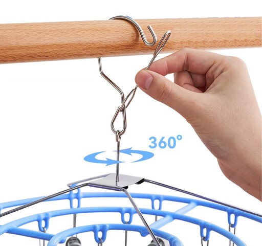 【Suszarka do ubrań obracana o 360°】🧺 Wieszak do suszenia ubrań jest wyposażony w wiatroszczelną klamrę, która zapobiega upadkowi. Górną część kosza można obrócić o 360°, aby ułatwić suszenie we wszystkich kierunkach.