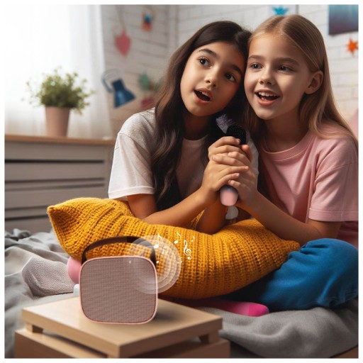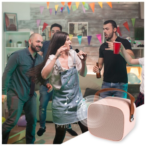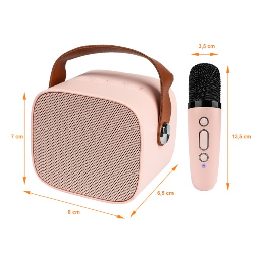 Bezprzewodowy zestaw karaoke z przenośnym głośnikiem, obsługą Bluetooth, portem TF (microSD) i wyjściem słuchawkowym, który doskonale sprawdza się podczas dziecięcych zabaw, wakacyjnych wyjazdów, ognisk, domówek, prywatek i imprez z przyjaciółmi.