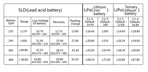 do paneli fotowoltaicznych połączonych do akumulatorów o napięciu 12V, 24V, 36V lub 48V,