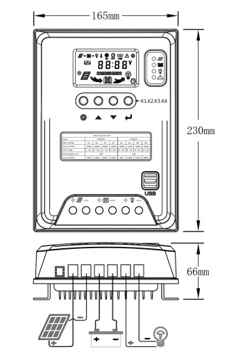 Kontroler ma ograniczony tryb ładowania prądu. Gdy moc panelu słonecznego przekroczy określony poziom, a prąd ładowania będzie większy niż prąd znamionowy, sterownik automatycznie obniży moc ładowania i doprowadzi prąd ładowania do poziomu znamionowego.
