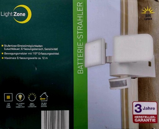 Idealny do automatycznego oświetlania wjazdów, podjazdów, wiat samochodowych itp. Oświetlenie odbywa się za pomocą dwóch reflektorów, z których każdy emituje 900 lumenów jasności.