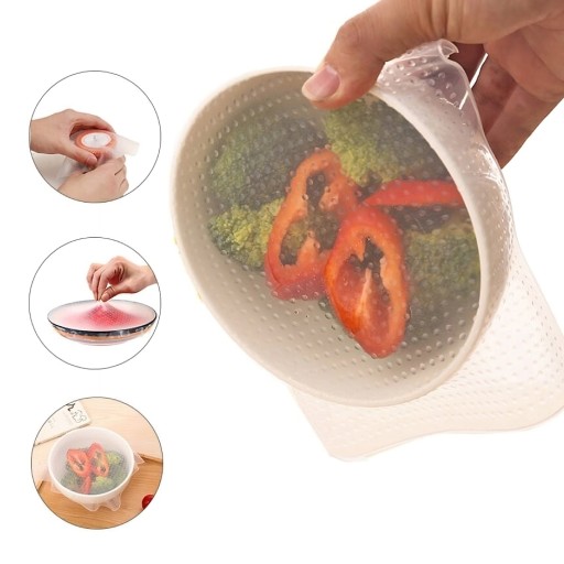 Zestaw wykonany jest z elastycznego silikonu, który doskonale dopasowuje się do różnego rodzaju pojemników / misek, Produkt sprawdzi się do każdego typu materiału (szkło, porcelana, stal, tworzywo sztuczne itp.).