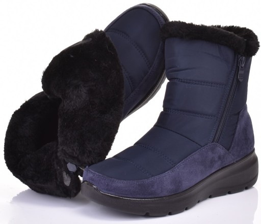 WYGODNE ŚNIEGOWCE NA ZAMEK OCIEPLANE DAMSKIE BUTY ZIMOWE GRANATOWE
