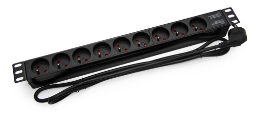 Listwa zasilająca umożliwia podłączenie do 10 urządzeń jednocześnie, przy maksymalnym łącznym obciążeniu 3680 W. Urządzenie montowane jest do szafy RACK 19".