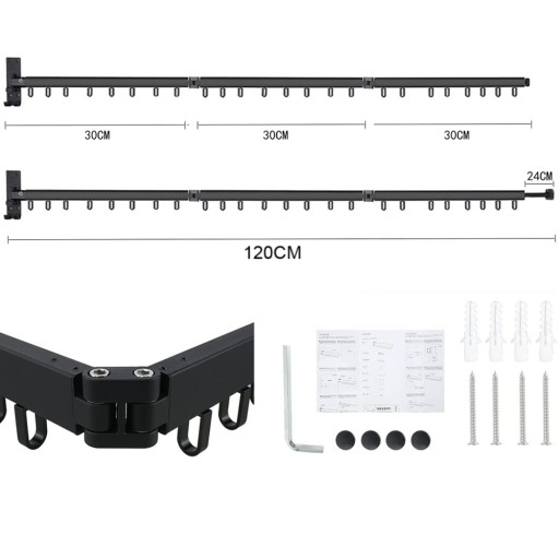 - ✅Wieszak ma 3 złożone sekcje po 30 cm każda, a drążek przedłużający na końcu wieszaka rozciąga się na ponad 24 cm do wieszania ręczników, czapek i szalików.