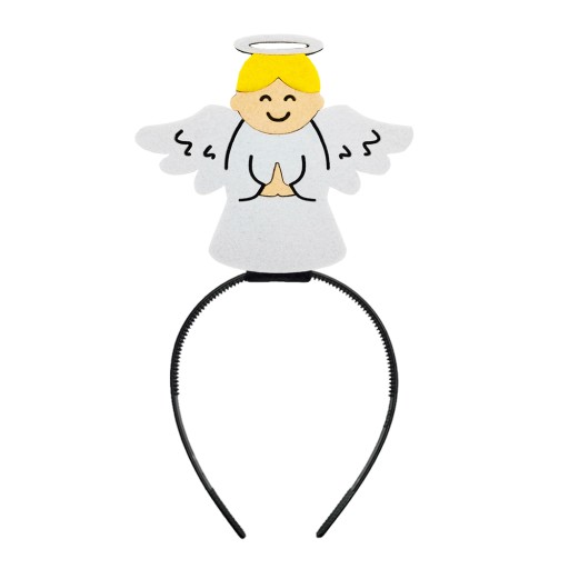 - opaska aniołka złożona z dwóch rozdzielnych elementów: plastikowej opaski oraz filcowego emblematu chłopięcego aniołka w blond włosach