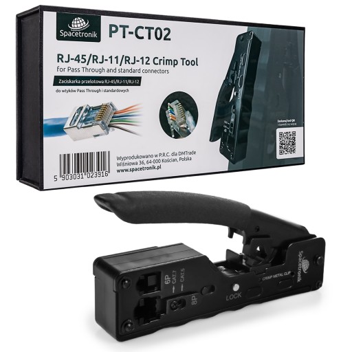 Zaciskarka przelotowa do wtyków RJ45 + RJ12, RJ11 Spacetronik PT-CT02