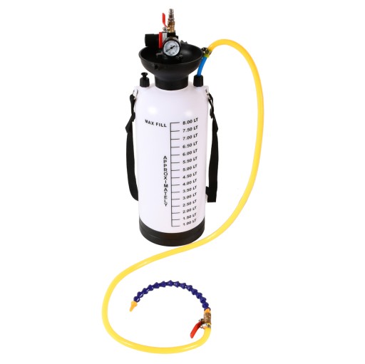 Dyspenser pneumatyczny o pojemności 8l przeznaczony do pneumatycznego nalewania oleju.
