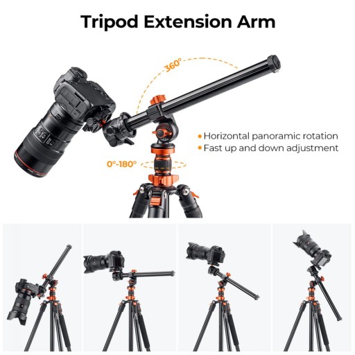 Kolumna centralna K&F Concept to poziome, pochylane ramię do statywu fotograficznego, które może wydłużyć jego tradycyjną, pionową sztycę.