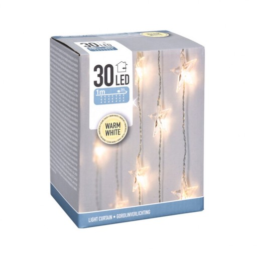 Szukasz lampek, które podkreślą magię Świąt Bożego Narodzenia i zimy? Pragniesz ozdobić dom ciekawymi dekoracjami? Polecamy kurtynę z lampkami w kształcie gwiazdek. Kurtyna z 30 diodami LED pięknie oświetli Twój dom!