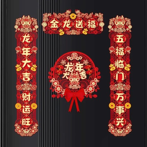 1 комплект куплетов китайского весеннего фестиваля, китайский дракон, новогодний куплет