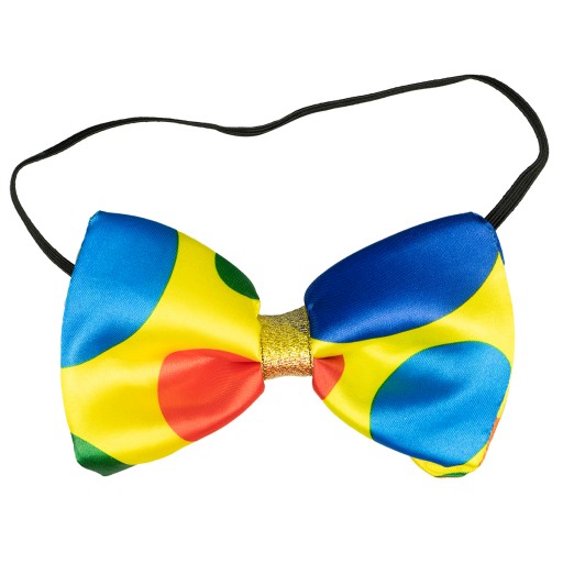 Zabawny gadżet, element stroju klauna. Kolorowa mucha na elastycznej gumce. Nieodzowny element przebrania klauna. Gadżet dla animatorów zabaw dziecięcych lub element przebrania na karnawał.