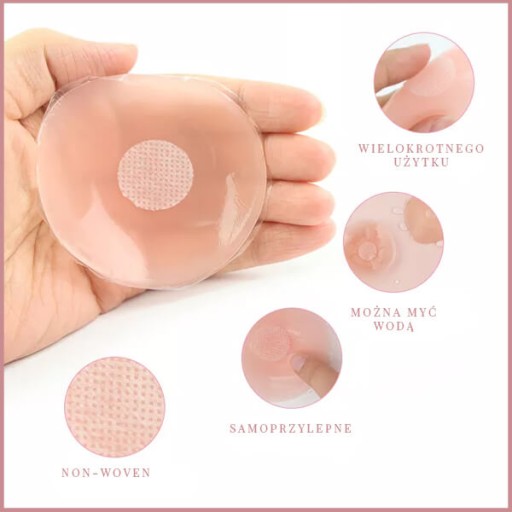 Znajdź swoją definicję komfortu i skorzystaj z całkowicie silikonowych nasutników! Oto dodatek bieliźniany, z którego będziesz całkowicie zadowolona. Samoprzylepne osłonki, wykonane z przyjemnego w dotyku cienkiego silikonu w cielistym kolorze, doskonale maskują brodawki przez co stają się niewidoczne pod ubraniem i zapewniają komfort, ochronę i dyskrecję. Przylegają idealnie do ciała oraz są łatwe w użyciu. Wykonane z silikonu medycznego w kolorze cielistym, stapiają się z barwą skóry, na zewnątrz, a w wewnętrznej stronie pokryte hipoalergicznym klejem. Przyjemny w dotyku, przyjazny dla skóry silikon nie wywołuje podrażnień i mocno trzyma się piersi. Neutralny kolor idealnie zlewa się z barwą kobiecego ciała i skutecznie zapobiega odznaczaniu się sutków. Znajdują zastosowanie nie tylko przy głębokich dekoltach, ale również przy prześwitujących, zwiewnych czy koronkowych ubraniach, odsłoniętych plecach czy pod biustonosz sportowy. Osłonki są wielorazowego użytku, po każdym użyciu należy przemyć wewnętrzną stronę letnią wodą. Osłonki są w kształcie kwiatu i będą pasować na każdy biust.