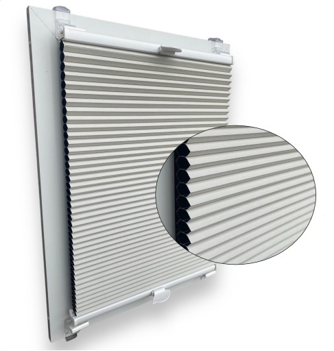 ✅ ZIMA ❄️Plisy termoizolacyjne - Tkanina posiada w środku srebrną folię aluminiową. Specjalne kanaliki w tkaninie sprawiają, że plisy doskonale redukują utratę ciepła w chłodne dni i pozwalają na utrzymanie komfortowej temperatury wewnątrz. Przekłada się to na mniejszą konieczność dogrzewania pomieszczenia w okresie zimowym. Plisa izoluje zimno z szyby podczas sezonu zimowego, dlatego określa się ten wariant plisy mianem energooszczędnych.