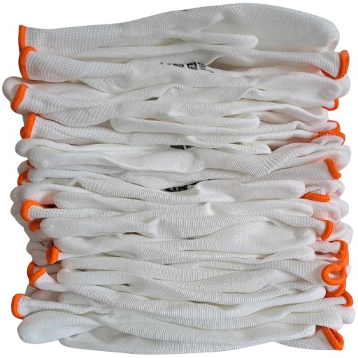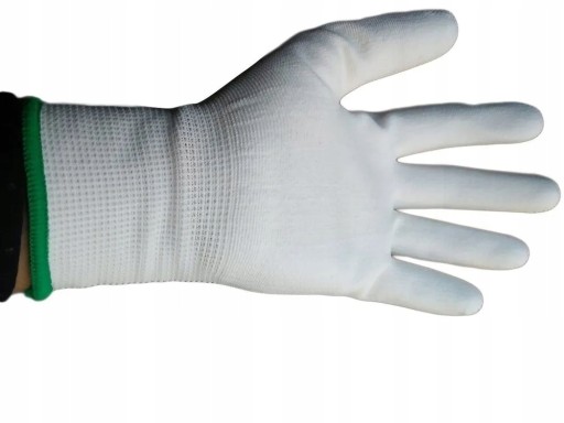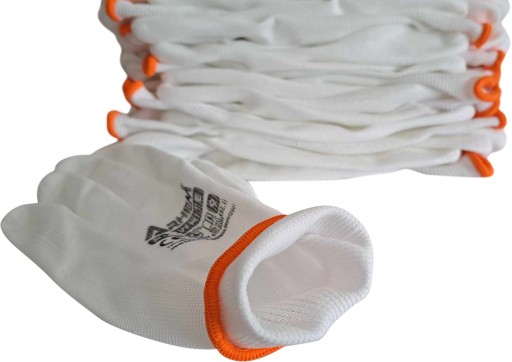 ► Rękawice ochronne wykonane z elastycznej, bezszwowej, z białej dzianiny poliestrowej (ścieg 13).