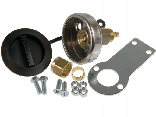 W skład zestawu wchodzi zawór tankowania do zabudowy razem z blachą montażową i akcesoriami.