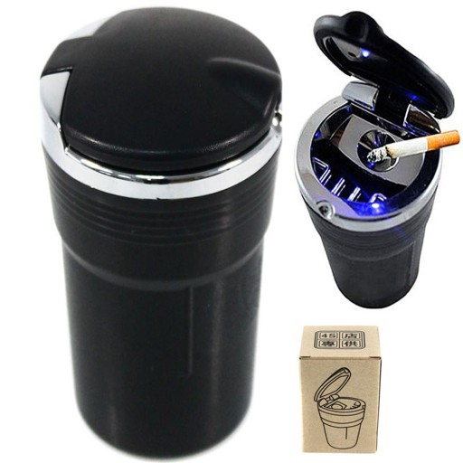 Kompaktowa popielniczka samochodowa z estetycznym, niebieskim podświetleniem LED. Doskonale spełni również rolę samochodowej śmietniczki na drobne odpadki bądź jako dodatkowa popielniczka w warunkach domowych! Diodowe, automatycznie uruchamiane podświetlenie ułatwia korzystanie z popielniczki w nocy, a zamykane wieko uniemożliwia roznoszenie się popiołu i nieprzyjemnego zapachu w jej okolicach! Idealnie pasuje do samochodowego cap holdera, dzięki czemu będzie się pewnie trzymać na swoim miejscu podczas jazdy!