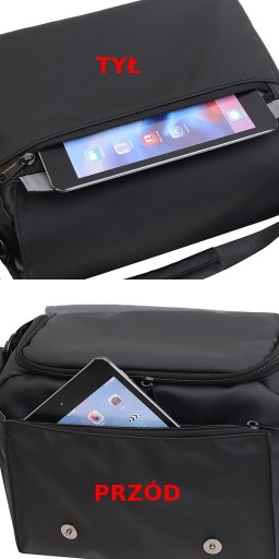 -kieszeń znajdująca się z tyłu torby, zamek zabezpieczony dodatkowo wstawką z materiału, chroni przed dostaniem się wody