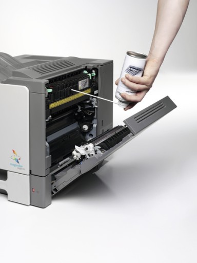 Sprężone powietrze palne do czyszczenia trudno dostępnych miejsc w urządzeniach biurowych.