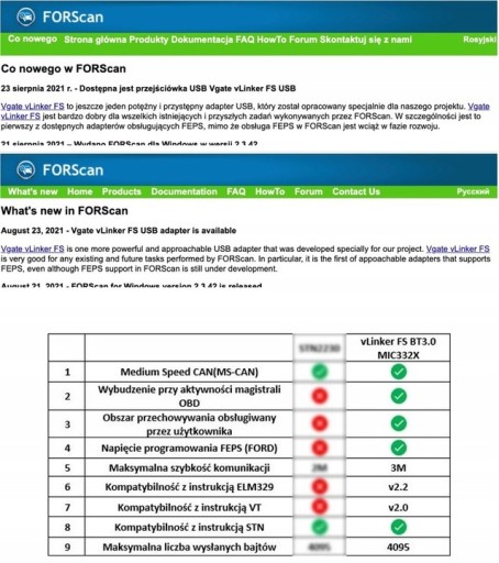 Z oficjalnych wiadomości z oficjalnej strony FORScana z dnia 23.08.2021 możemy wyczytać, że nasz interfejs vLinker FS został stworzony specjalnie do programu FORScan, jest rekomendowany przez jej autorów ze względu na jego zaawansowane funkcje i zgodność z samochodami marki Ford oraz jest rozwijany razem z jego twórcami, co czyni go jednym z najpotężniejszych adapterów dostępnych na rynku!