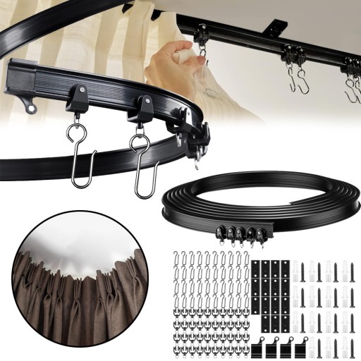 ✅O rozmiarze: całkowita długość zakrzywionego toru miękkich okien wynosi 5 metrów / 16,4 stopy, możesz przedłużyć tor, łącząc końce, aby utworzyć jeden ciągły tor, lub dostosować tor kurtyny do rozmiaru za pomocą drobnozębnej piły do metalu.
