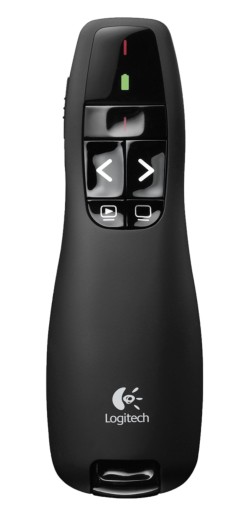 Logitech R400 to funkcjonalne urządzenie wskazujące o intuicyjnym rozmieszczeniu przycisków wyposażone w czerwony wskaźnik lasera ułatwiający prowadzenie prezentacji nawet w bardzo ciemnych pomieszczeniach.