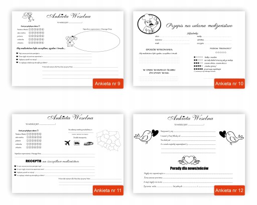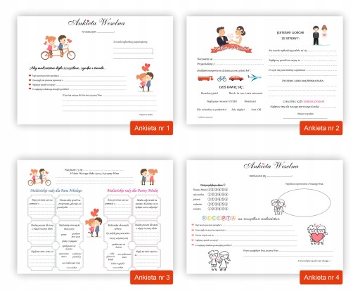 Posiadamy 16 modeli ankiet weselnych, dostępnych po zakupie.