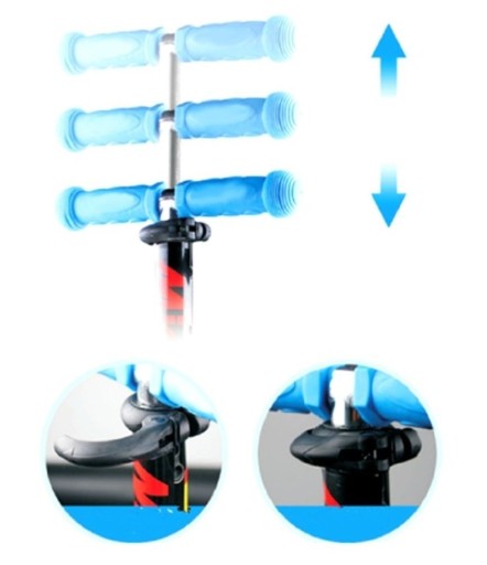 - wystarczy zwolnić zacisk i lekko podciągnąć kierownicę aby złożyć lub rozłożyć hulajnogę do jazdy