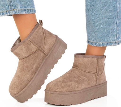 Cholewka śniegowców została wykonana z zamszu, który oprócz eleganckiego wyglądu charakteryzuje się wysoką trwałością. Wewnętrzna część buta została ocieplona ciepłym futerkiem, które doskonale chroni przed niskimi temperaturami i utrzymuje stopę w przyjemnym cieple. Futerko jest miękkie i przyjemne w dotyku, zapewniając wygodę podczas noszenia.