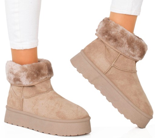 Cholewka śniegowców została wykonana z miękkiego zamszu, co nadaje im elegancki wygląd i jednocześnie zapewnia trwałość i odporność na wilgoć. Wewnętrzna część buta jest ocieplona mięciutkim i ciepłym futerkiem, które chroni stopy przed zimnem i zapewnia przyjemne uczucie ciepła.