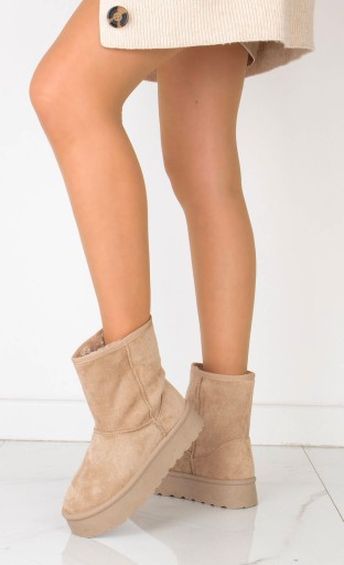Cholewka śniegowców została wykonana z miękkiego zamszu, co nadaje im elegancki wygląd i jednocześnie zapewnia trwałość i odporność na wilgoć. Wewnętrzna część buta jest ocieplona mięciutkim i ciepłym futerkiem, które chroni stopy przed zimnem i zapewnia przyjemne uczucie ciepła.