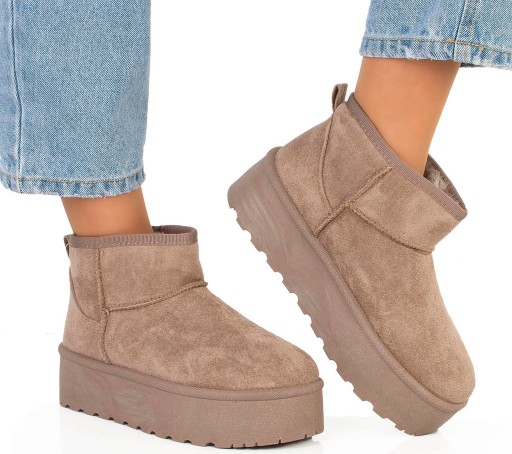 Cholewka śniegowców została wykonana z zamszu, który oprócz eleganckiego wyglądu charakteryzuje się wysoką trwałością. Wewnętrzna część buta została ocieplona ciepłym futerkiem, które doskonale chroni przed niskimi temperaturami i utrzymuje stopę w przyjemnym cieple. Futerko jest miękkie i przyjemne w dotyku, zapewniając wygodę podczas noszenia.