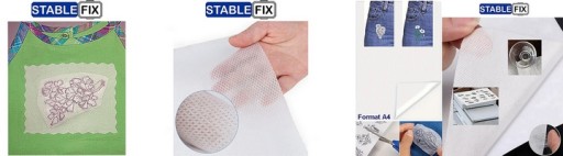 Flizelina Rozpuszczalna czy Hydrofolia Standardowa tzw. cienka (20 do 30 mikronów) lub mogą być stosowane zamiennie z Hydrofolią Gładką StableFIX GRUBĄ 80μm Rozpuszczalną w wodzie.