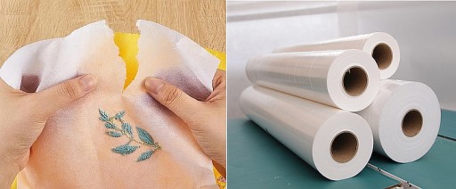 Flizelina Rozpuszczalna w wodzie w odróżnieniu od zwykłej Papierowej Flizeliny różni się tym, że po zakończonym haftowaniu jej nadmiar można oderwać, a pozostałe fragmenty rozpuszczą się w wodzie.