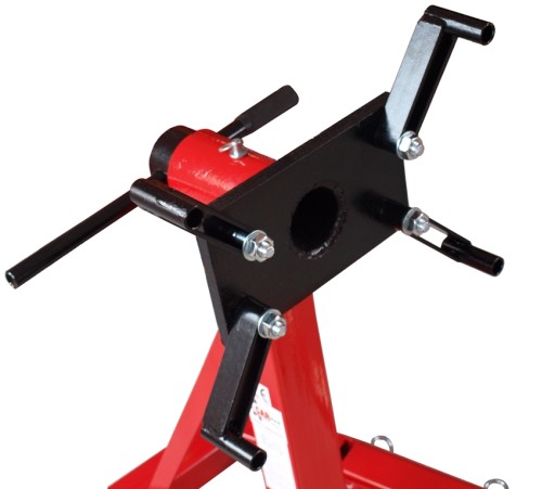 Stojak, za pośrednictwem 4 regulowanych łapek montowanych do bloku lub obudowy, umożliwia mocowanie silnika, skrzyni lub głowicy w celu dalszej obróbki. Stojak osadzony jest na 6 metalowych kółkach (4 skrętnych), co umożliwia swobodne przemieszczanie. Płyta montażowa jest wyciągana i umożliwia obracanie zamontowanego przedmiotu o 360° oraz jego zabezpieczenie przed samowolnym obracaniem.