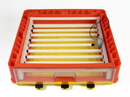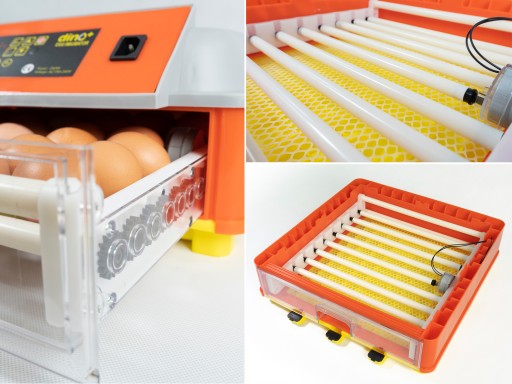 Inkubator jest wyposażony w automatyczny system obracania jaj, składający się z połączonych ze sobą rolek oraz silnika obsługującego mechanizm.