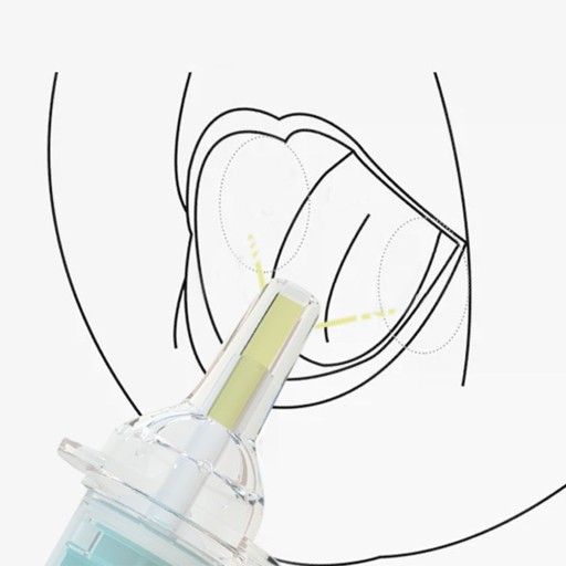 -Stream lekarstwo na obie strony policzka dzięki specjalnej konstrukcji, aby uniknąć bezpośredniego kontaktu płynu z gardłem dziecka.