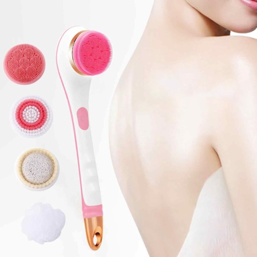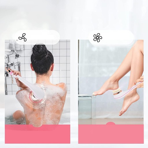 🫧 -Wyposażony w cztery główki szczoteczek: silikonową szczoteczkę do masażu, szczoteczkę z miękkim włosiem, szczoteczkę do pumeksu i szczoteczkę do luffy, które nadają się do oczyszczania twarzy, codziennej kąpieli i czyszczenia pleców.