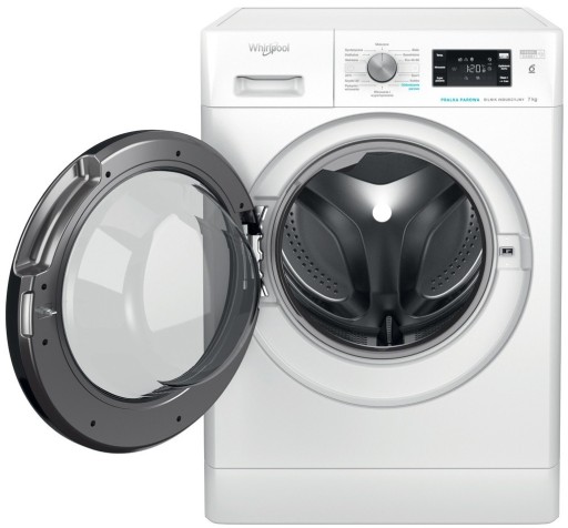 Przestronny bęben o pojemności 7 kg. Szybkie i skuteczne wirowanie z prędkością 1200 obrotów na minutę. Kolor drzwi czarny.