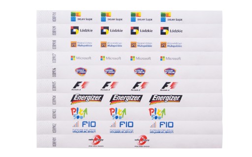 Opaski identyfikacyjne, bilety jednorazowego wstępu, idealne na każdą okazję, bardzo mocne, wytrzymałe, wodoodporne oraz antyalergiczne. Opaski są numerowane, samoprzylepne, posiadają swój własny bardzo wytrzymały klej, dzięki czemu nadają się również na kilkudniowe imprezy.