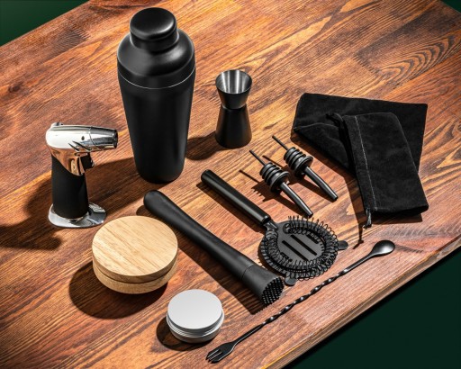 - w zestawie akcesoria barmańskie oraz sprzęt do wędzenia whisky i koktajli